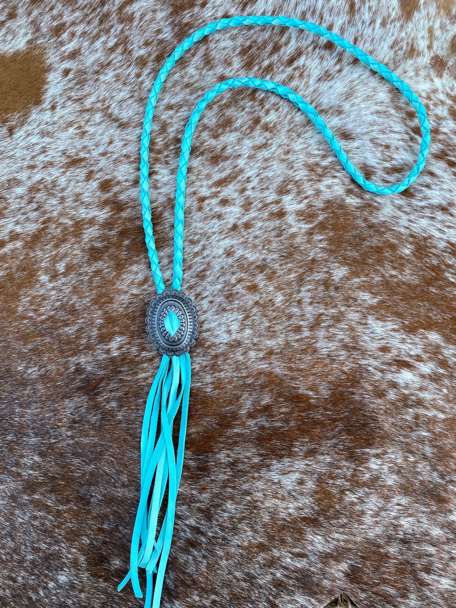 Leather art -- crafted and dyed by hand, then lovingly braided together in Texas. This American-made necklace is an artful tribute to fashion, plus it makes delightfully gift for any occasion.